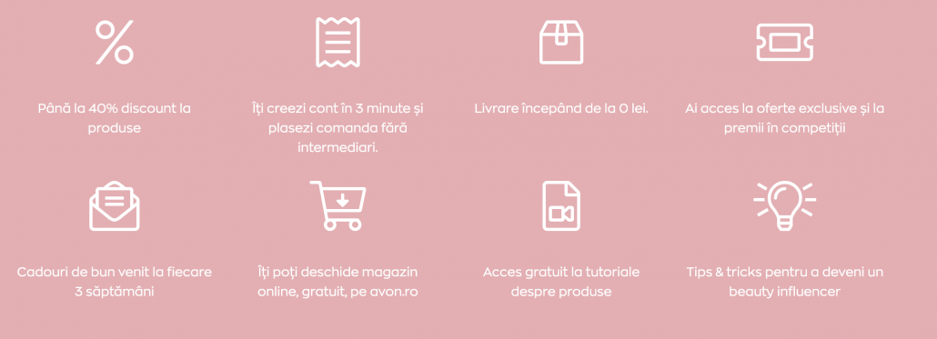 - Inscriere gratuita si indrumare in vanzarea si promovarea produselor Avon